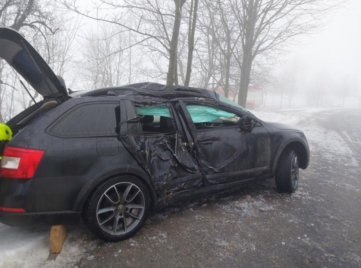 Mladý řidič dostal smyk a narazil do stromu, zranil se on i tři spolucestující více...