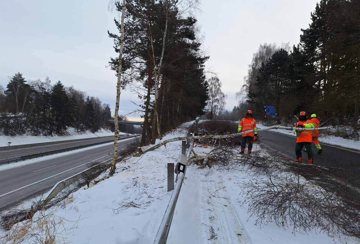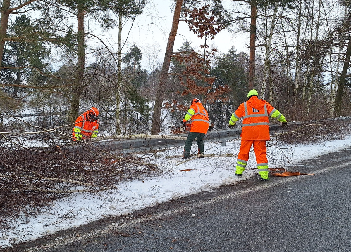 Do terénu s motorovou pilou. ŘSD v zimě prořezává nebezpečné stromy