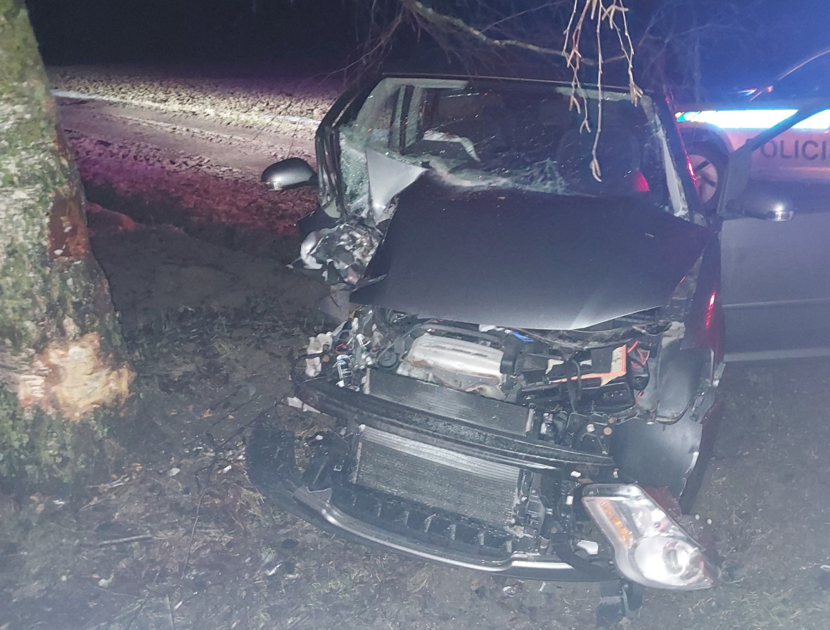 Řidič jedoucí na Rozkoš vyjel ze silnice a rozbil auto. Byl opilý. Foto: Se svolením Policie ČR
