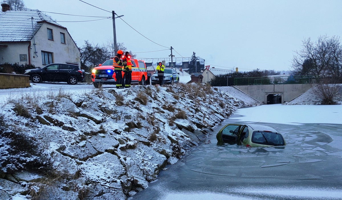 Pětaosmdesátiletý řidič na Třebíčsku couval a sjel do nádrže. Z auta vylezl sám