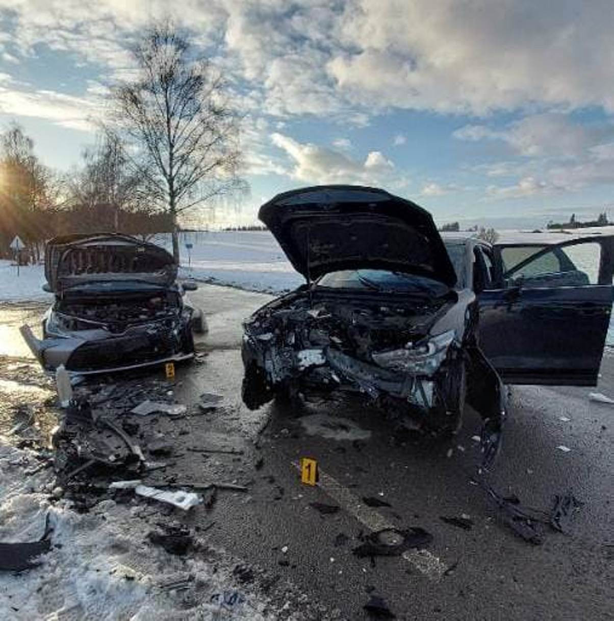 Odpolední nehoda dvou aut na Pelhřimovsku: Na místě jsou zranění