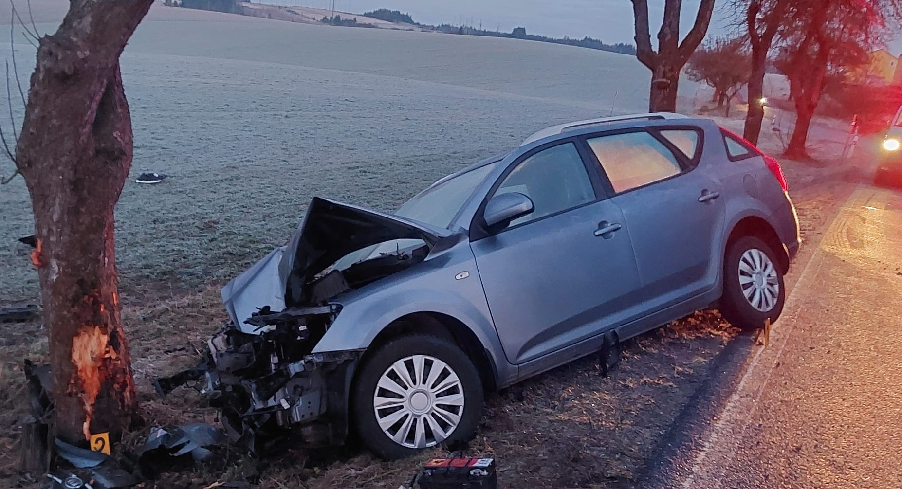 U Kamenice dnes ráno havarovala řidička, skončila v nemocnici. Foto: Se svolením Policie ČR