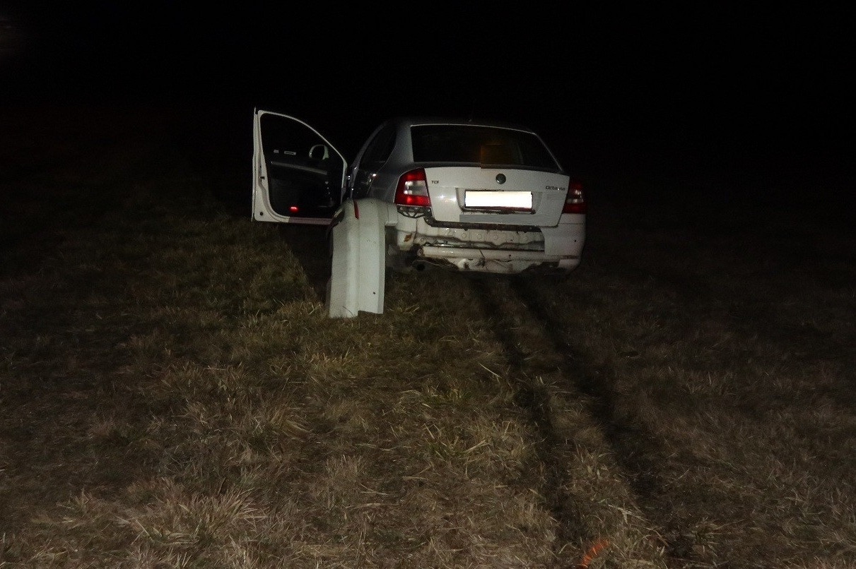 Opilý řidič u Hosova přeletěl kruhový objezd, policie naměřila 2,65 promile. Foto: Policie ČR