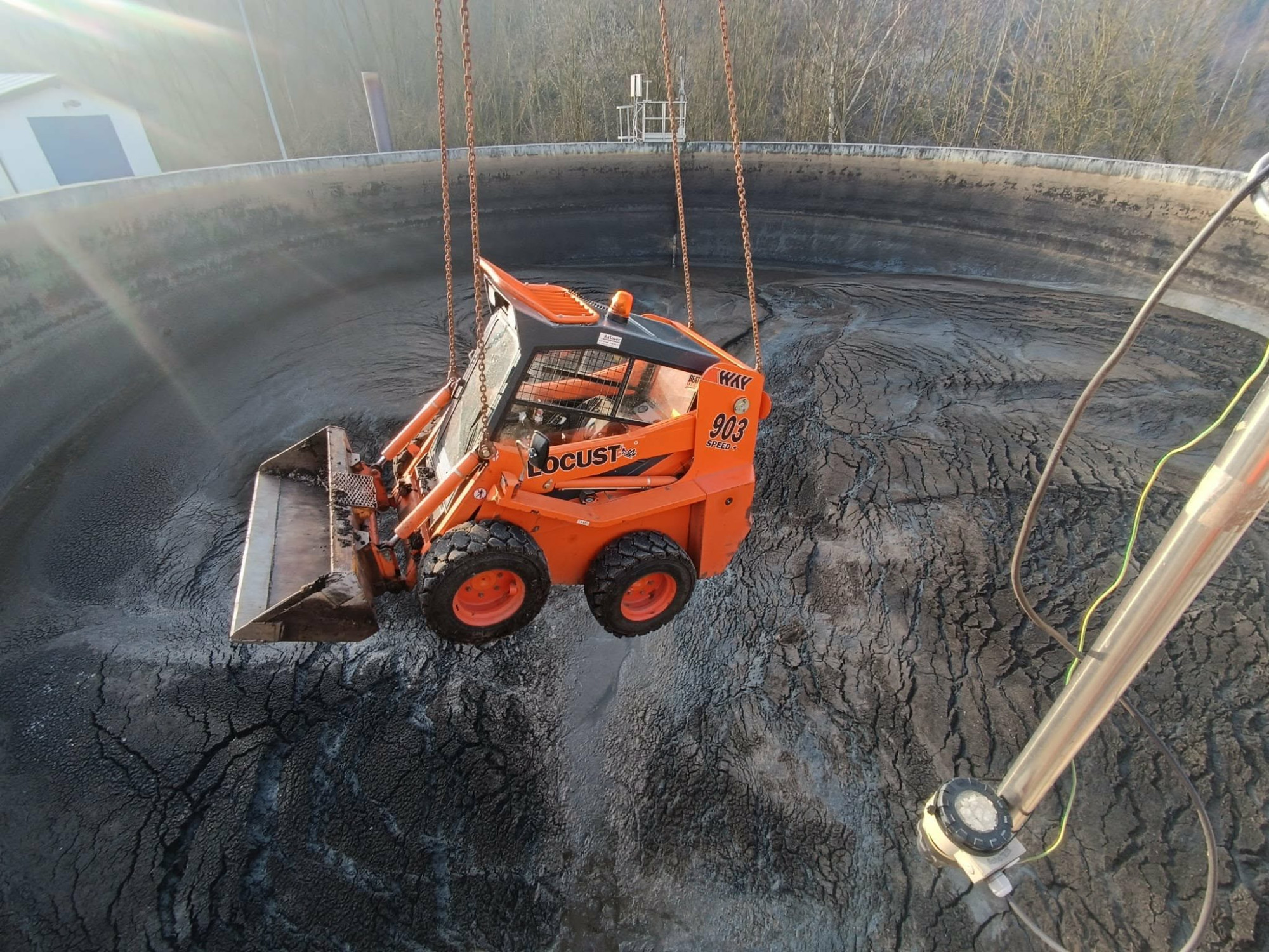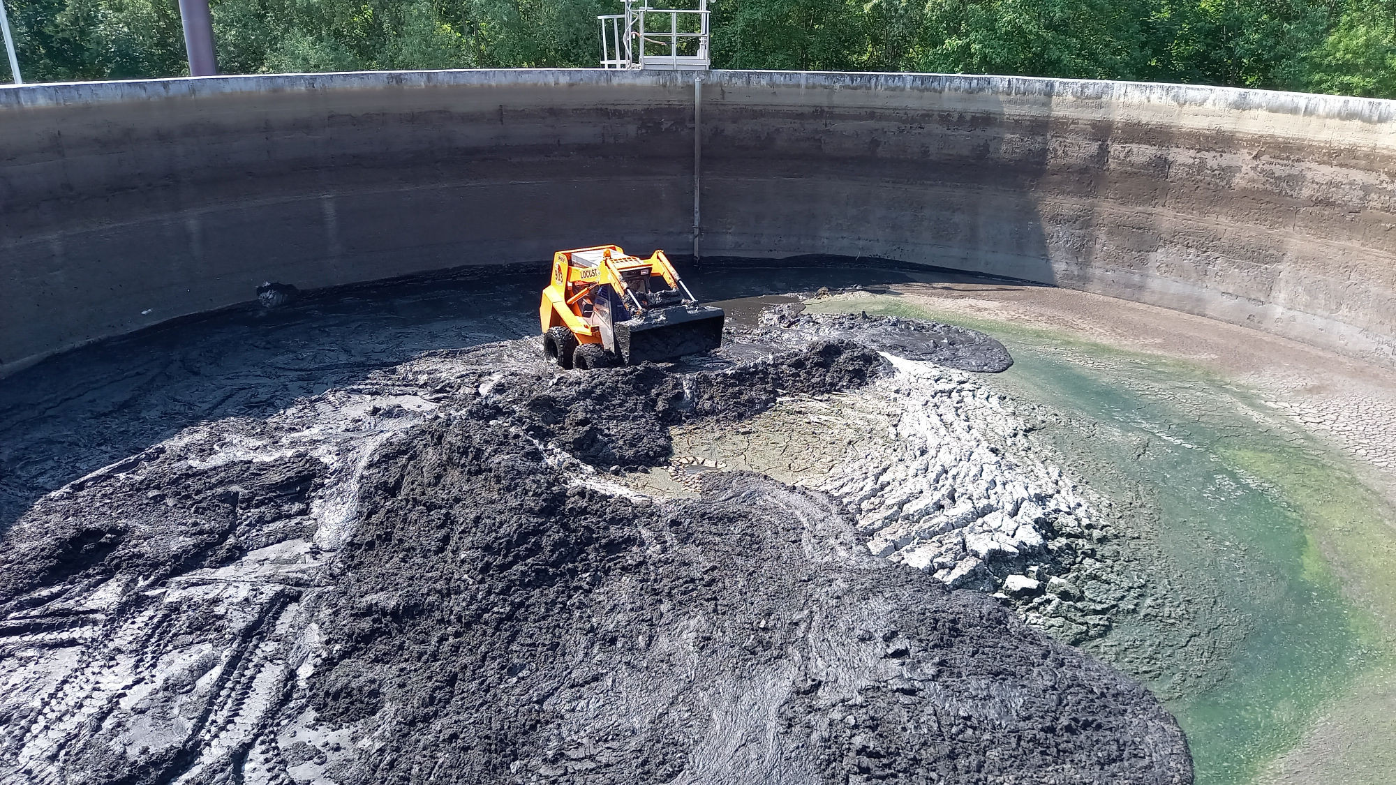 FOTO: Aktuálně z Jihlavy. Na ČOV čistí nádrž po třech letech, techniku spouští jeřáb