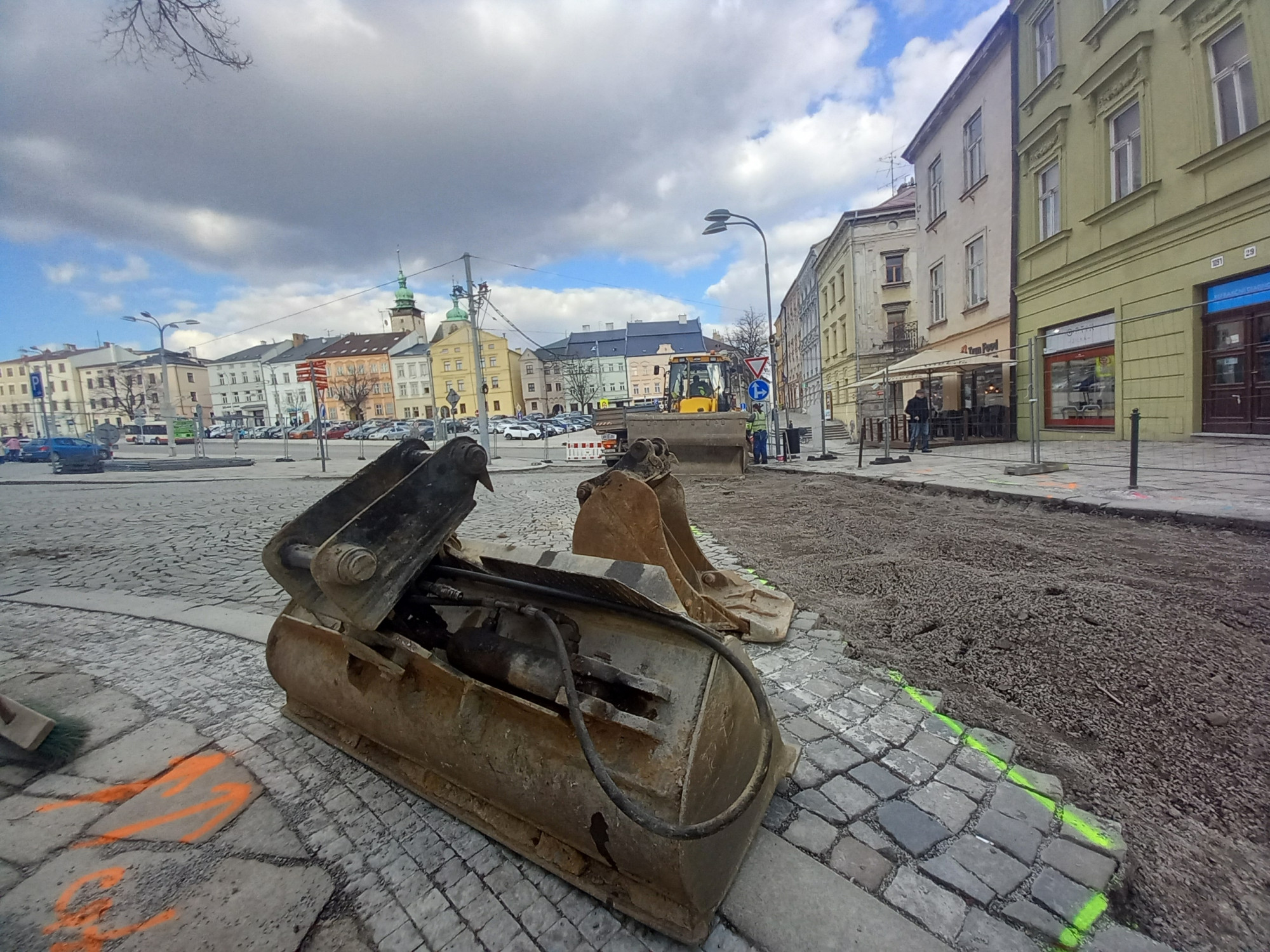 FOTO: Uzavírka na jihlavském náměstí: Dělníci rozebírají dlažbu ve spodní části