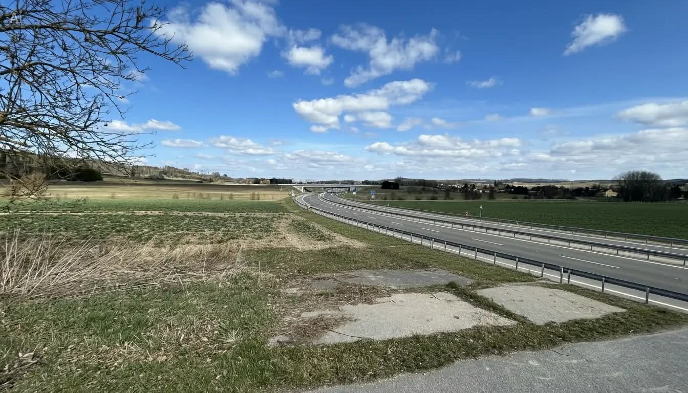 Vizualizace, jak by dálnice D20 v krajině u Dolní Cerekve vypadala (redakčně upraveno).