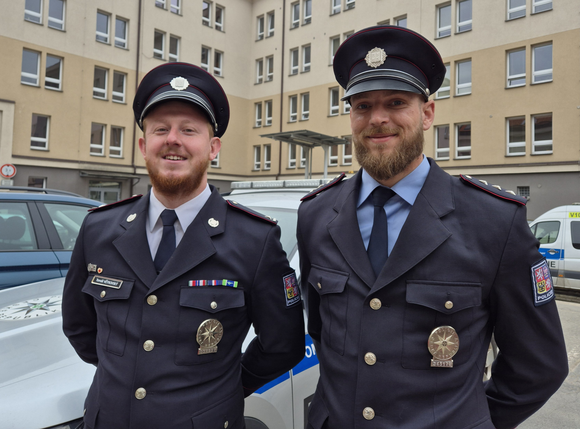 Oceněná dvojice policistů, zleva: Tomáš Větrovský a Robert Soukup