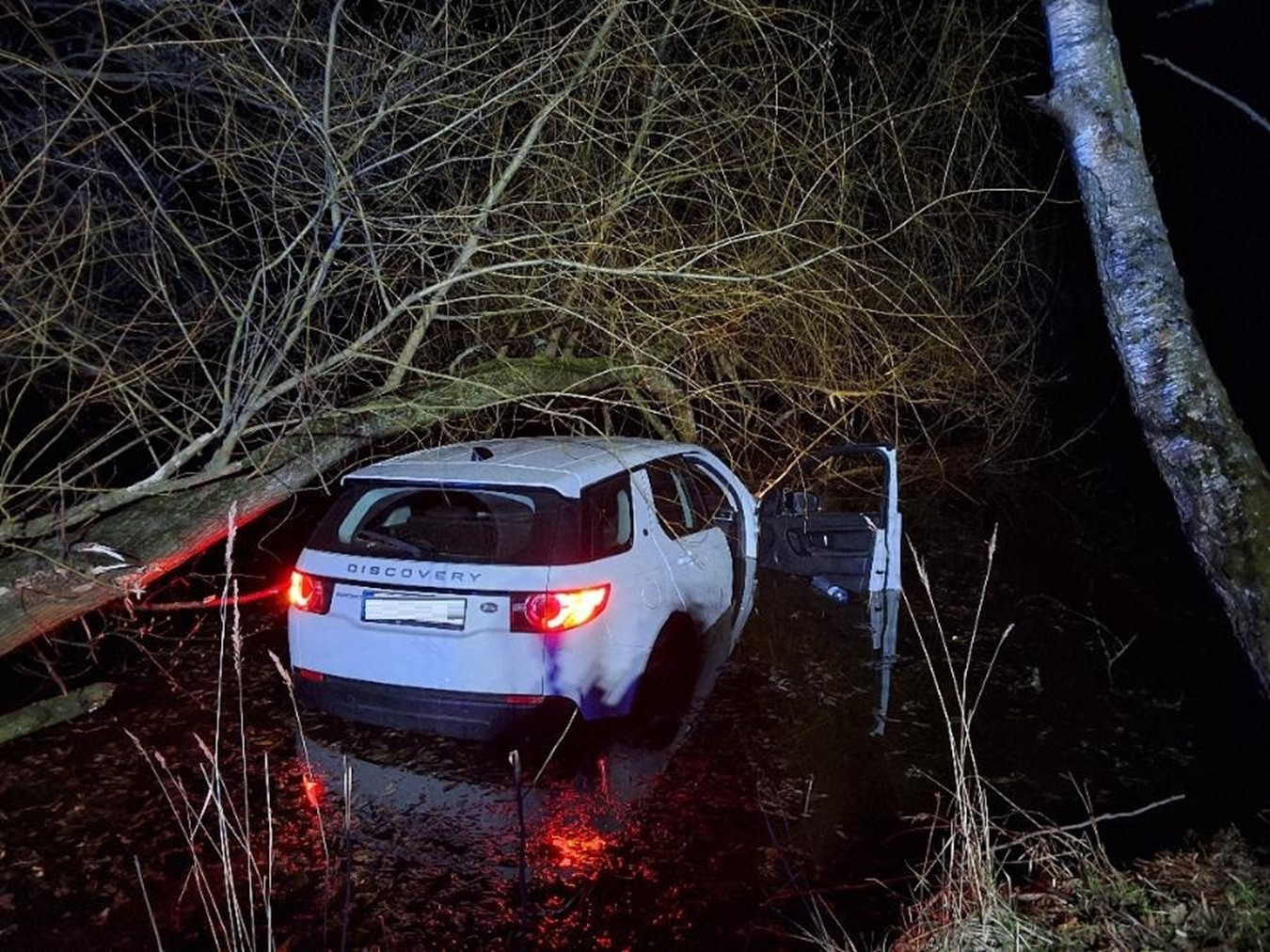 Mladá řidička sjela s Land Roverem do rybníka. Prý se vyhýbala zvěři. Foto: Policie ČR