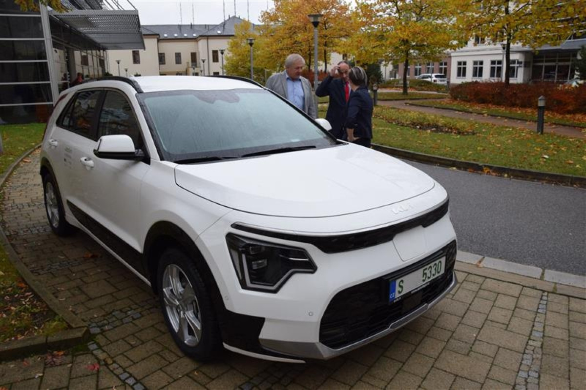První vlastní elektromobil Kraje Vysočina, Kia Niro, který kraj pořídil v rámci projektu Elektromobilita Kraje Vysočina 2023. Foto: Kraj Vysočina