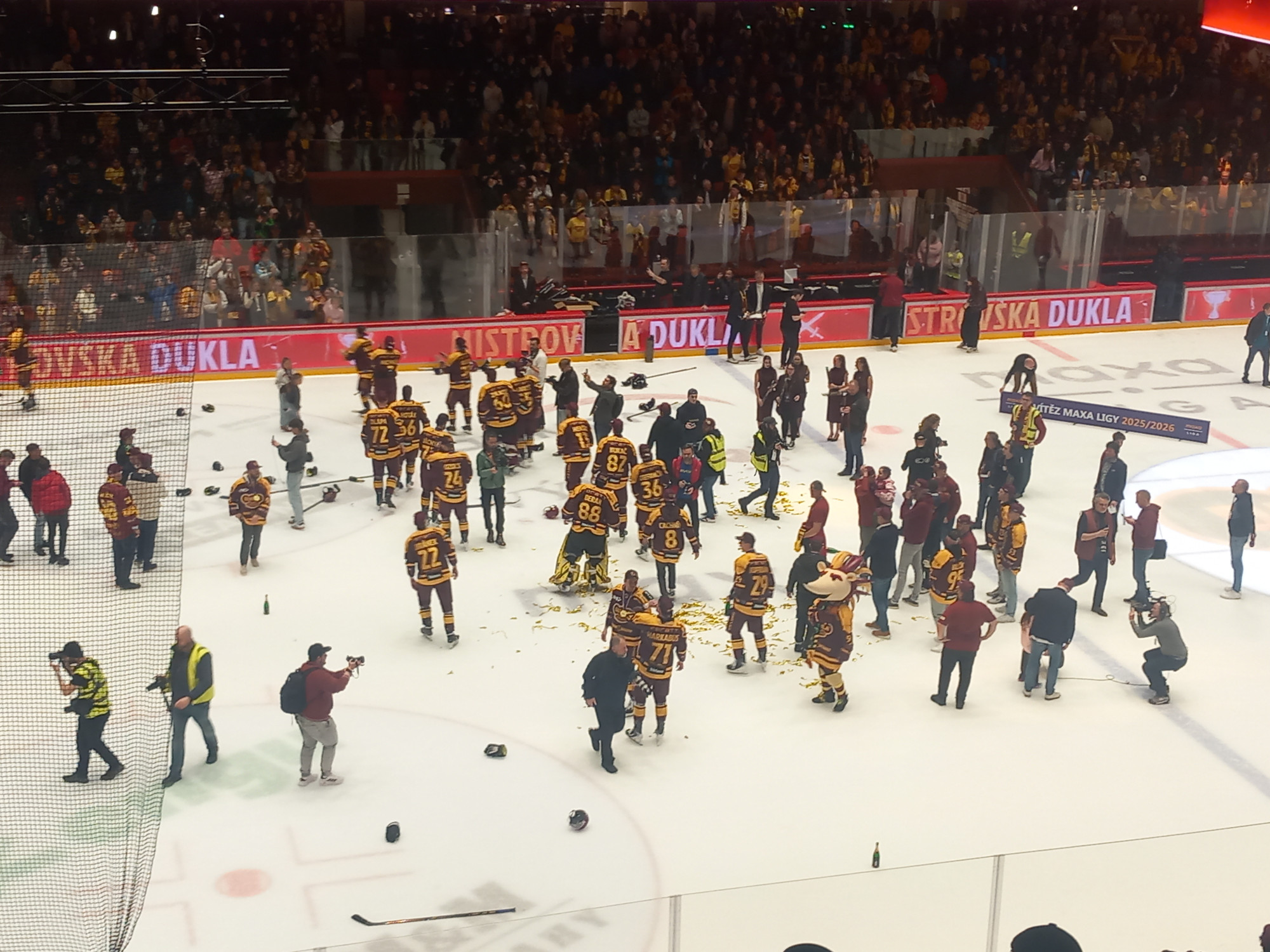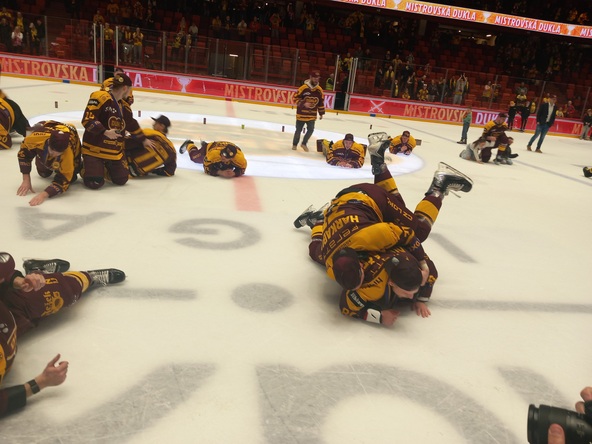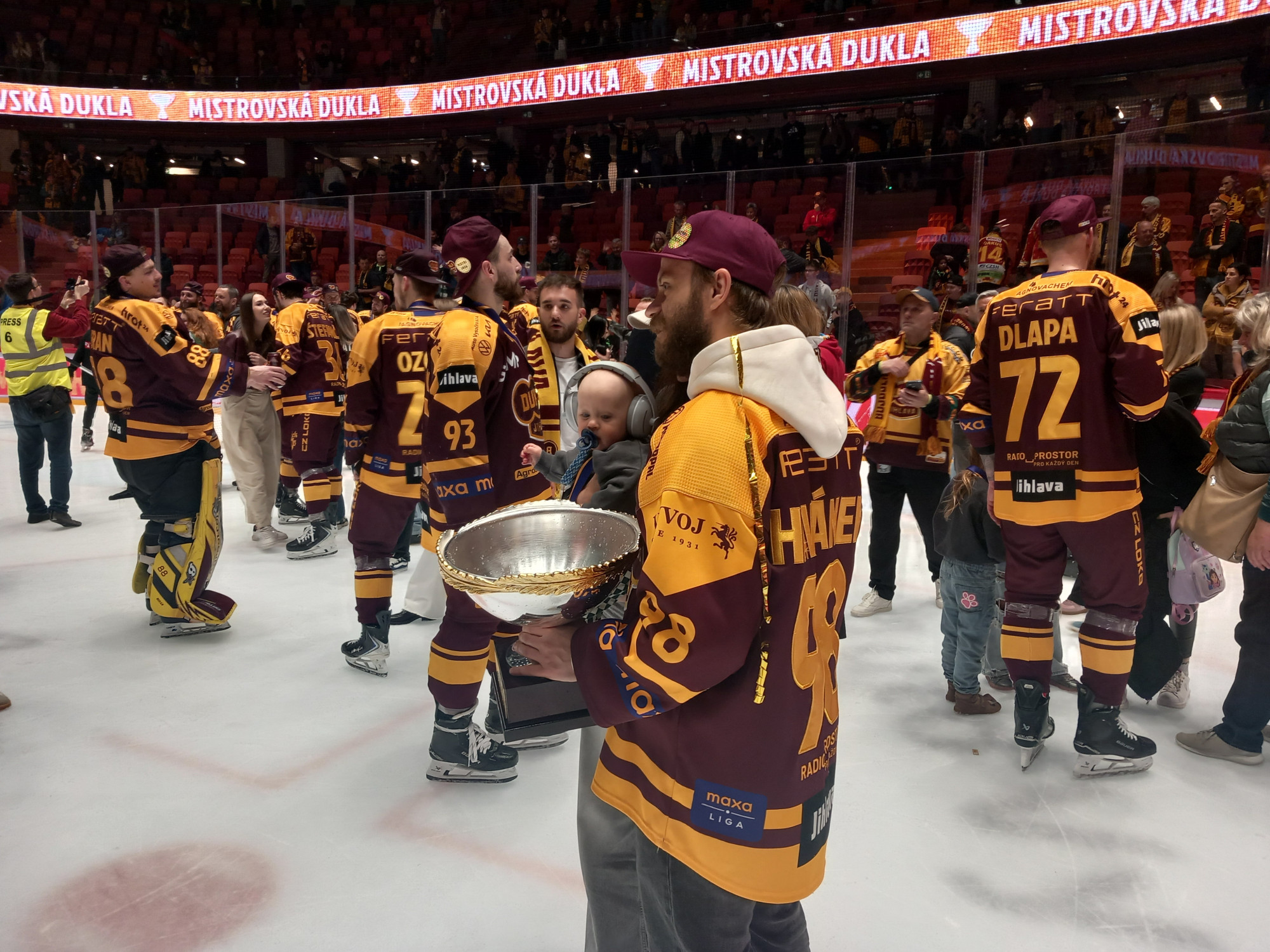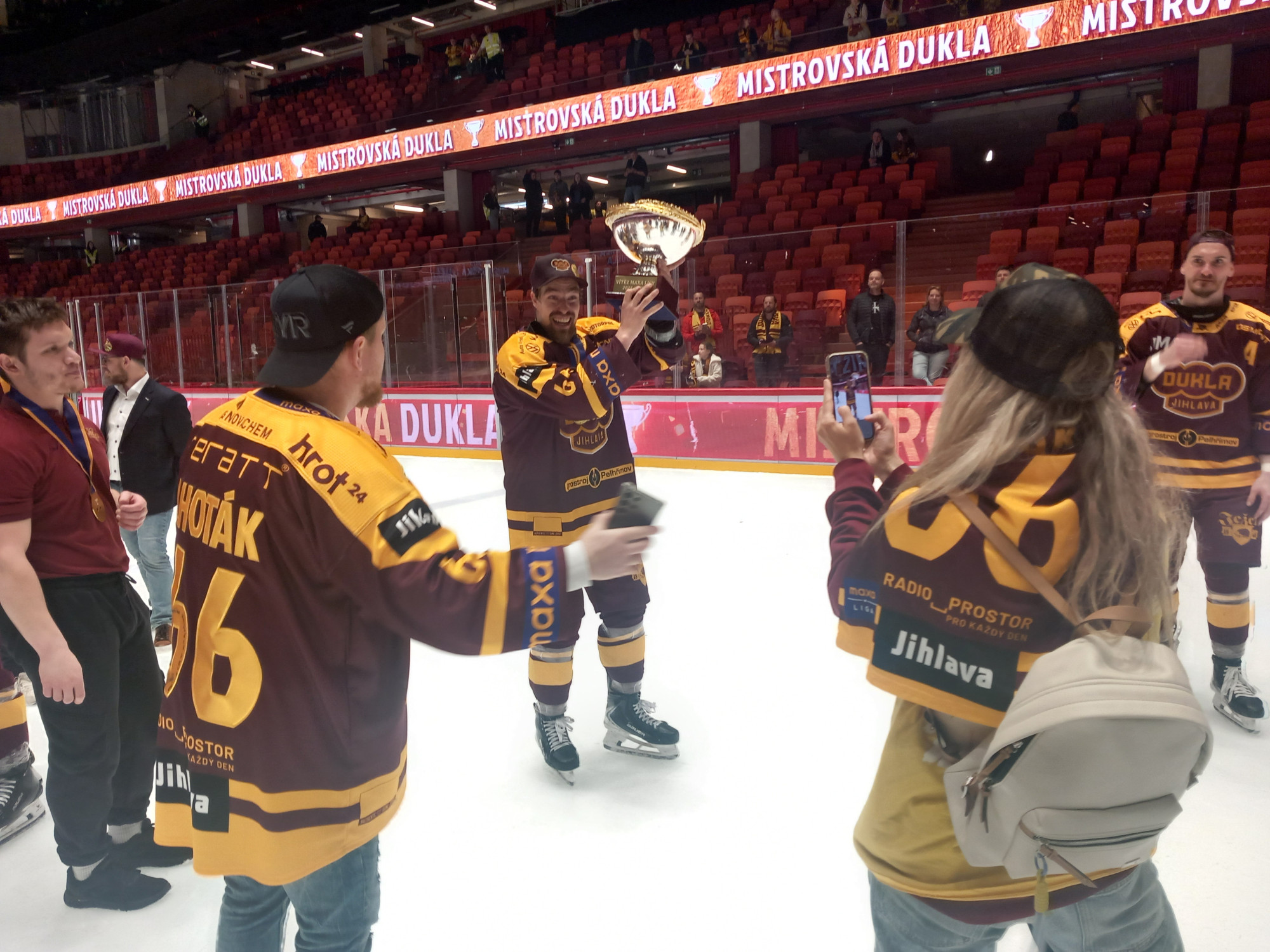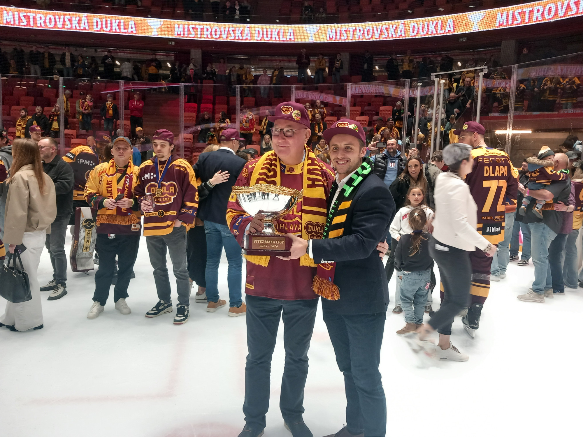 VIDEO, FOTO: Dukla Jihlava obhájila mistrovský titul. Oslavy na ledě byly bujaré