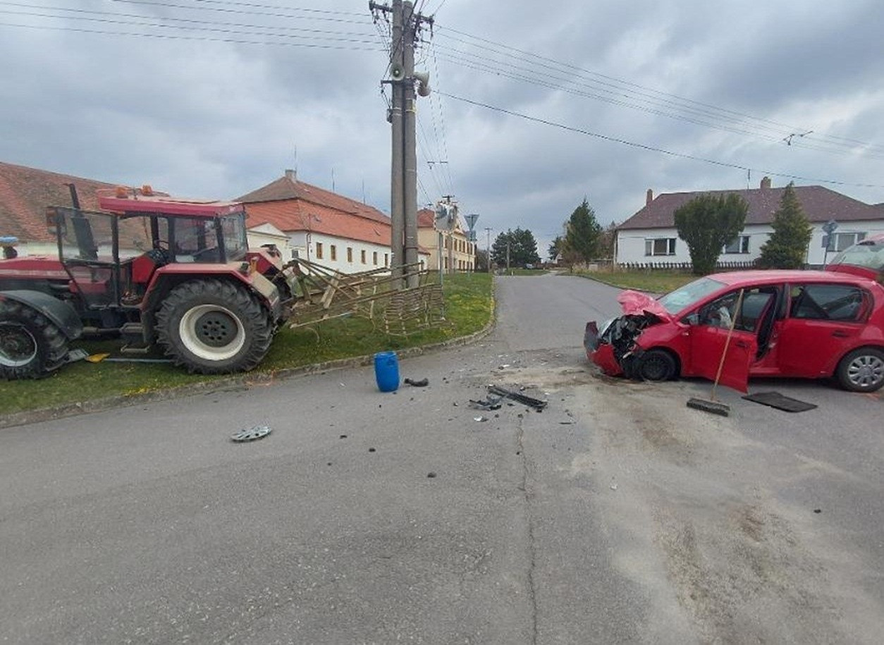 Žena vjela na silnici, po které zrovna projížděl traktor, škoda je dvě stě tisíc. Foto: Policie ČR