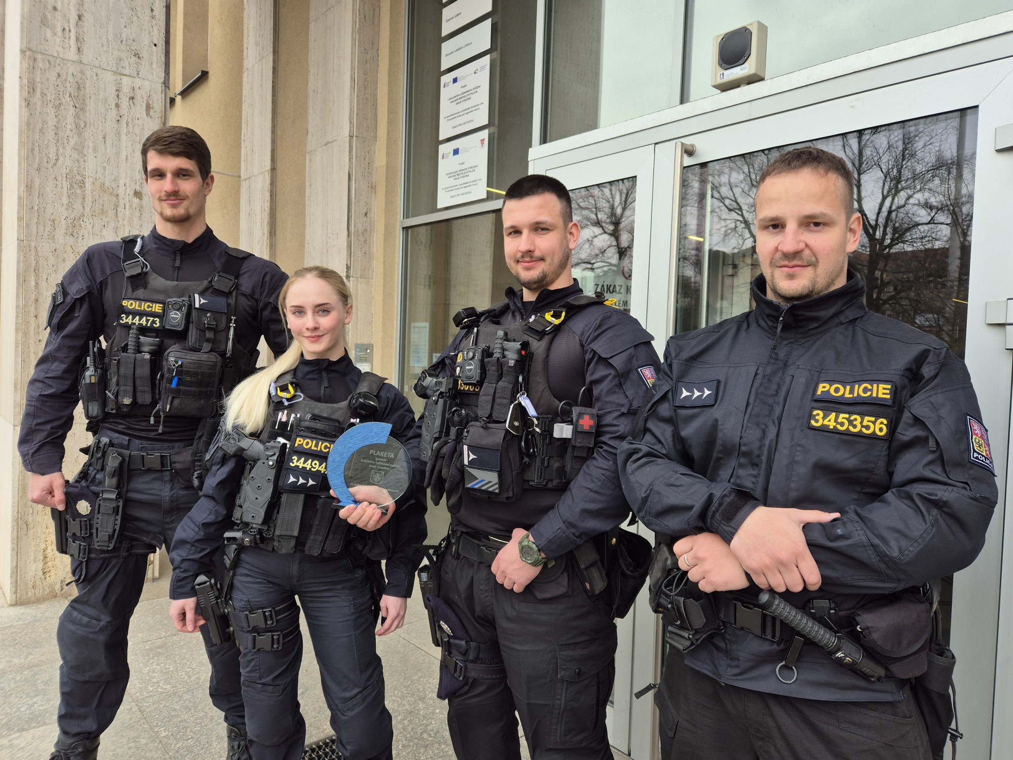 Ocenění policisté za zásah: Lukáš Sáblík, Adéla Borovičková, Petr Jahoda a Michal Vlach. Foto: Policie ČR