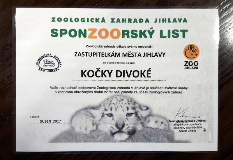 Jihlavské zastupitelstvy se také letos staly adoptivními rodiči kočky divoké v jihlavské zoo