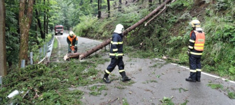 Popadané stromy, nehody, neprůjezdné úseky. Ošklivé počasí zaměstnalo hasiče v kraji