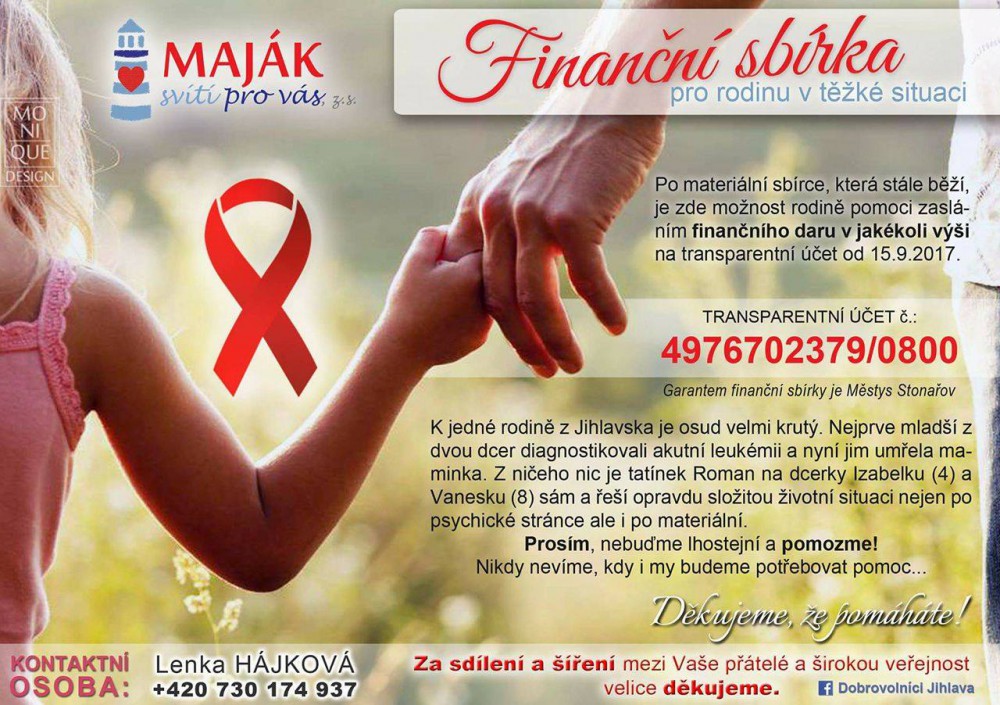 Pro rodinu ze Stonařova, která se ocitla v tíživé životní situaci, byl zřízen transparentní účet