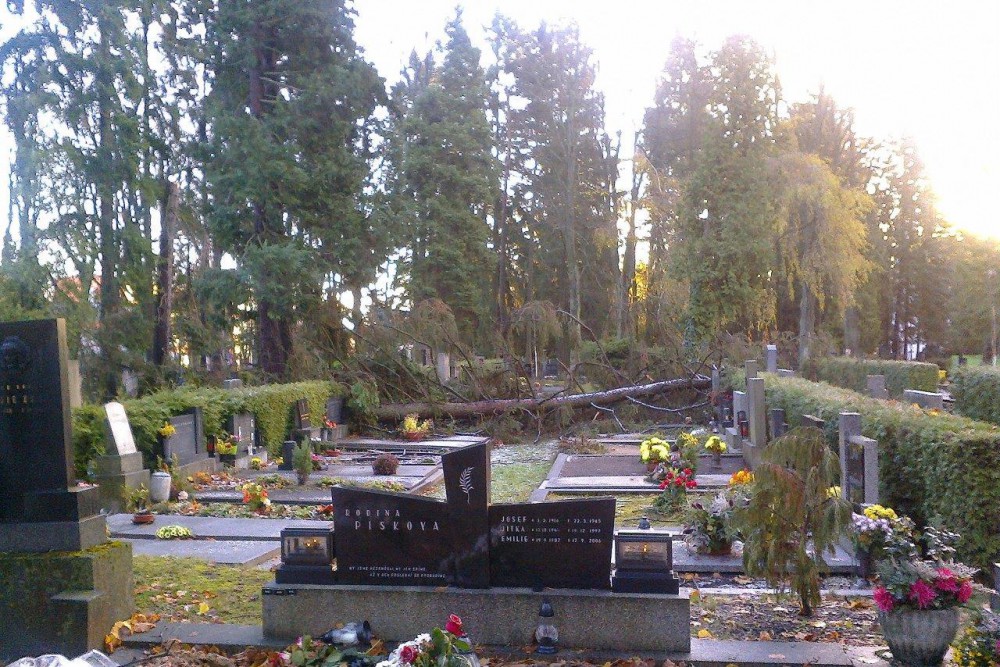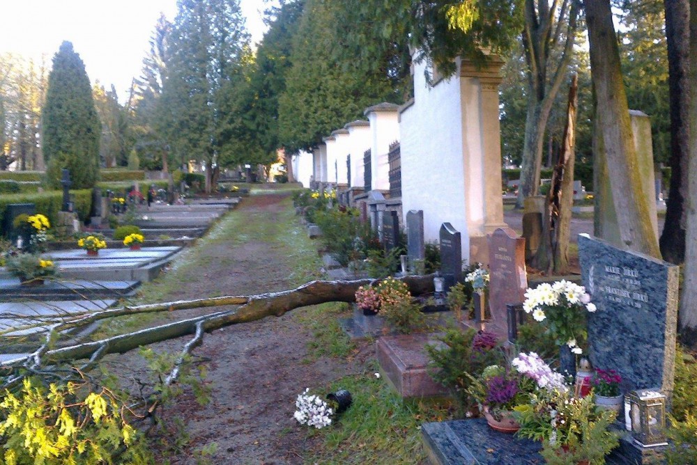 Jihlavský ústřední hřbitov je po řádění silného větru pro návštěvníky opět otevřený