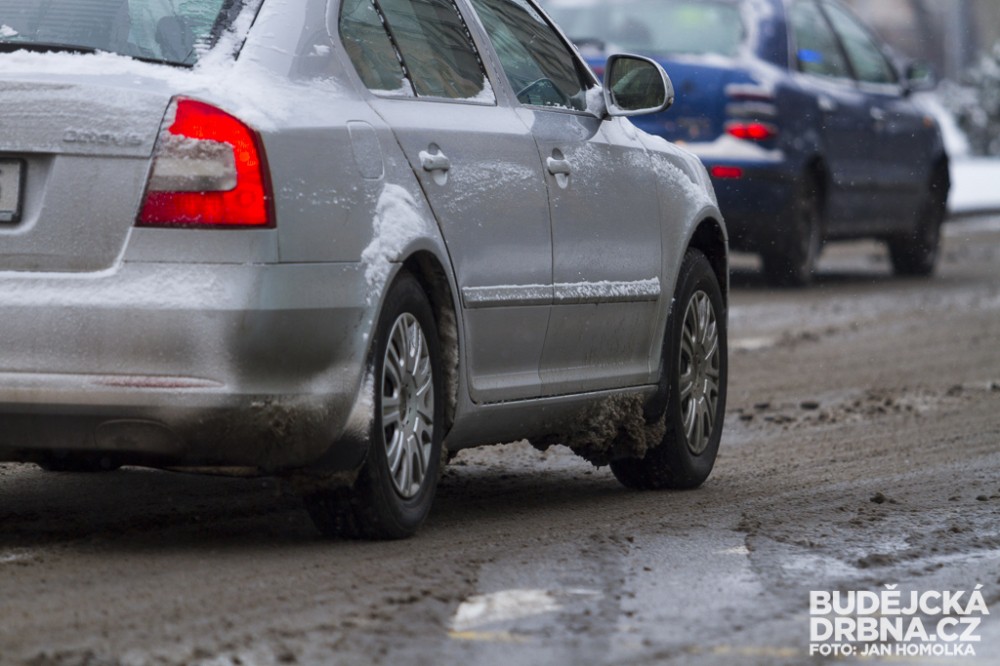SJÍZDNOST: Silnice Vysočiny jsou po přeháňkách mokré nebo s ujetým sněhem