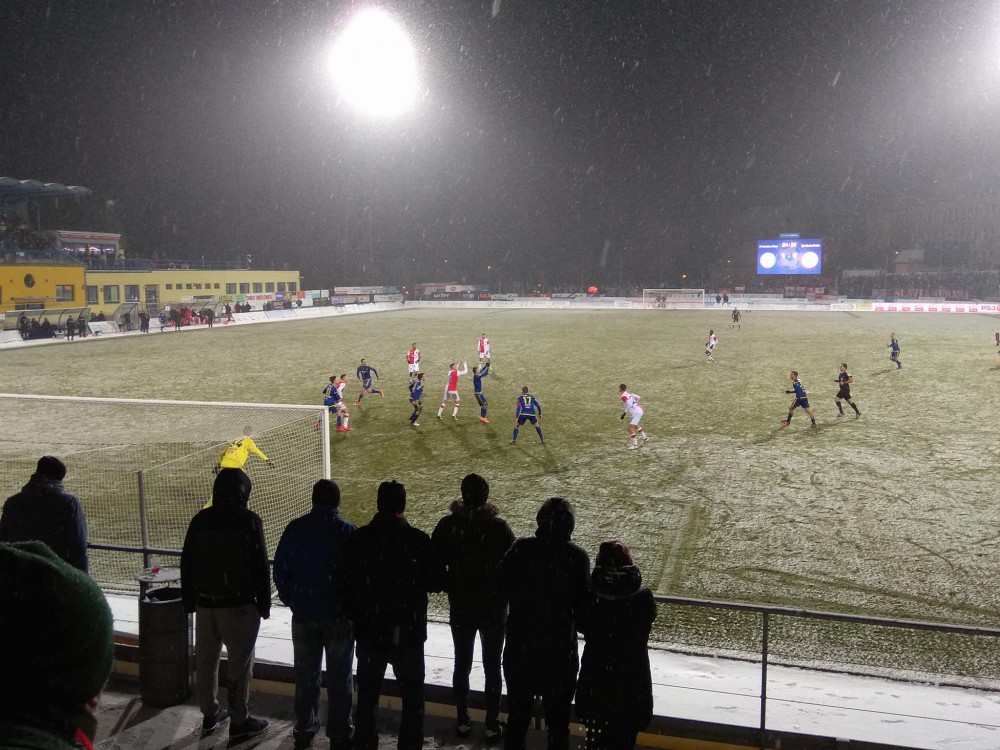 Zápas se Slavií sledovaly skoro čtyři tisíce fanoušků. Tři vběhli před utkáním na trávník