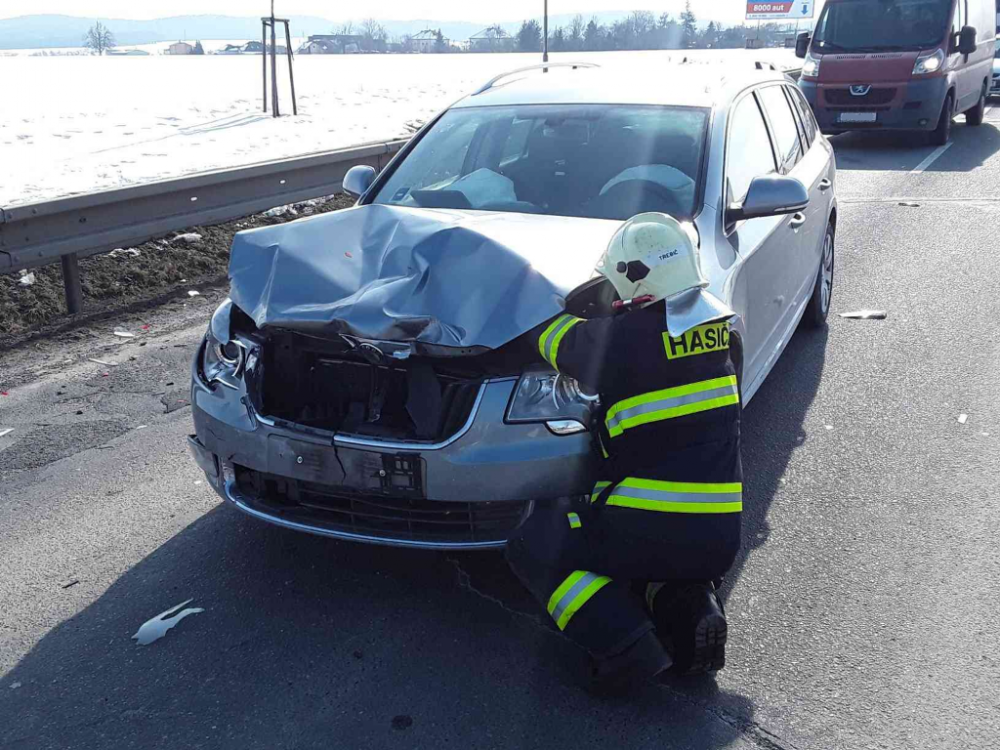 FOTO: V Třebíči se střela tři osobní vozidla, nehoda si vyžádala jedno zranění