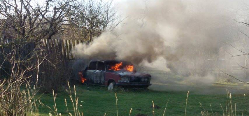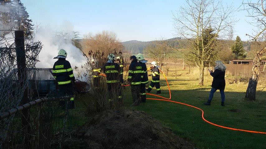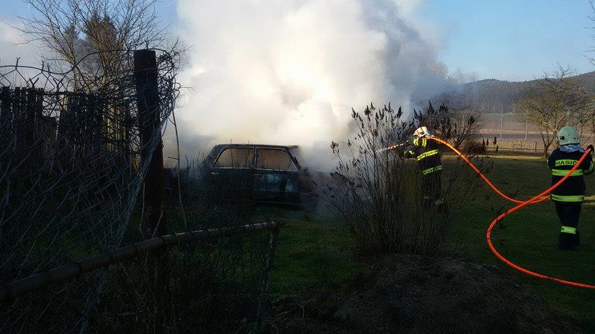 U panelových domů v Dolní Cerekvi hořel vrak starého automobilu