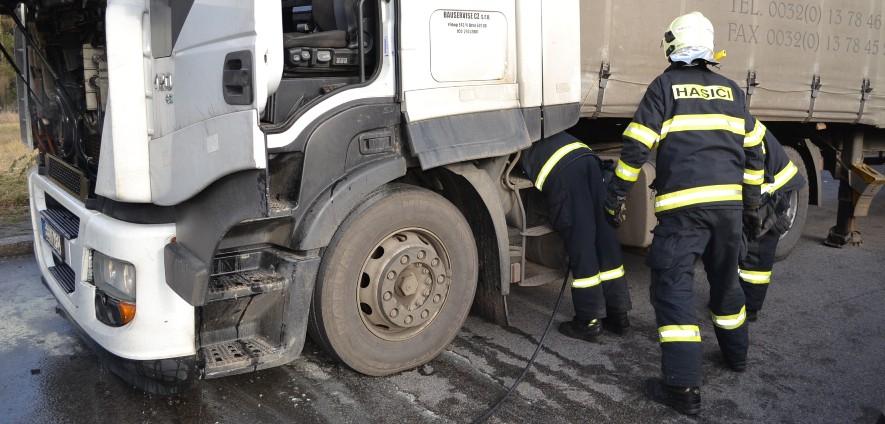 Na dálnici hořel kamion. Včasným zásahem hasiči uchránili majetek za dva miliony korun