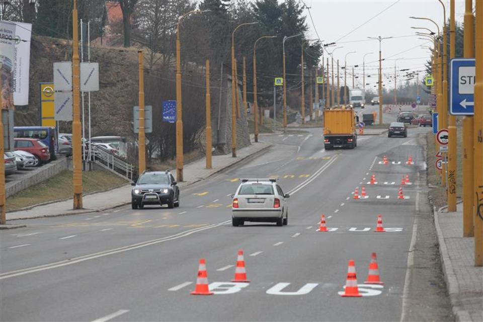 Řidiče v Jihlavě zaskočily BUS pruhy v Okružní ulici. Došlo i k nehodě auta s trolejbusem