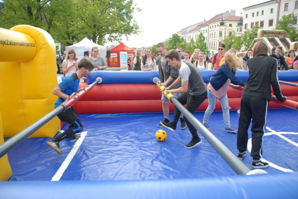 Stolní lidský fotbálek nebo lezecká stěna. Středeční akce Sportuj s VŠPJ rozhýbe Jihlavu