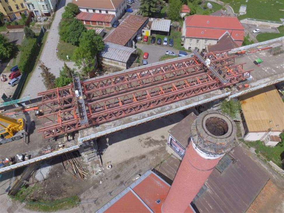 Druhý měsíc oprav Brněnského mostu v Jihlavě: Sedm set tun visí ve vzduchu