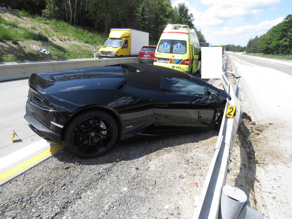 Cizinec v Lamborghini nezvládl na dálnici předjíždění a narazil do svodidel