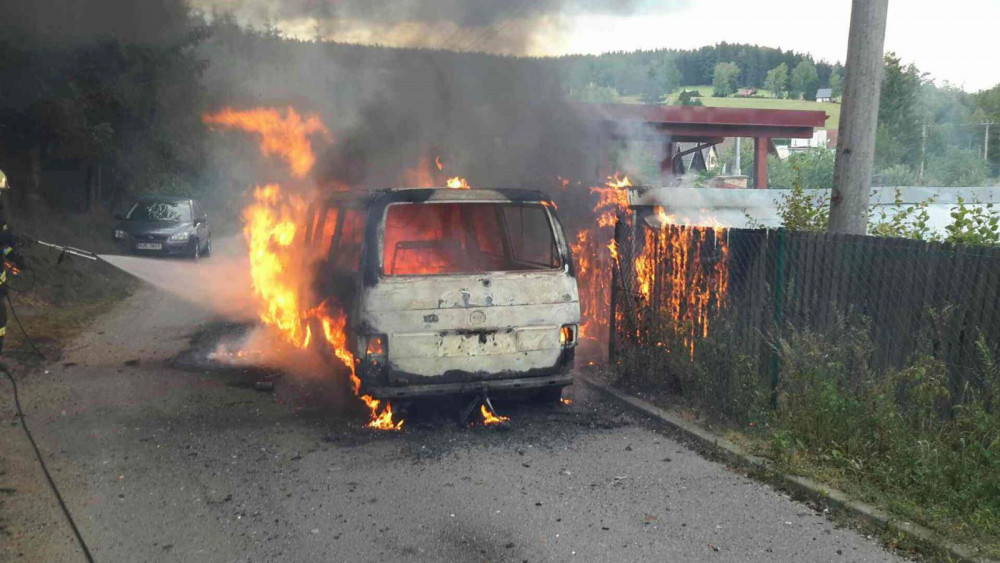 V Rantířově hořela dodávka s garáží. Škoda se vyšplhala na osmdesát tisíc korun