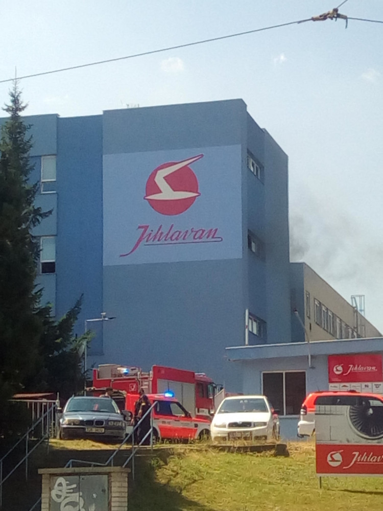 Hoří druhé patro ve firmě Jihlavan, na místě zasahuje více než dvacet jednotek
