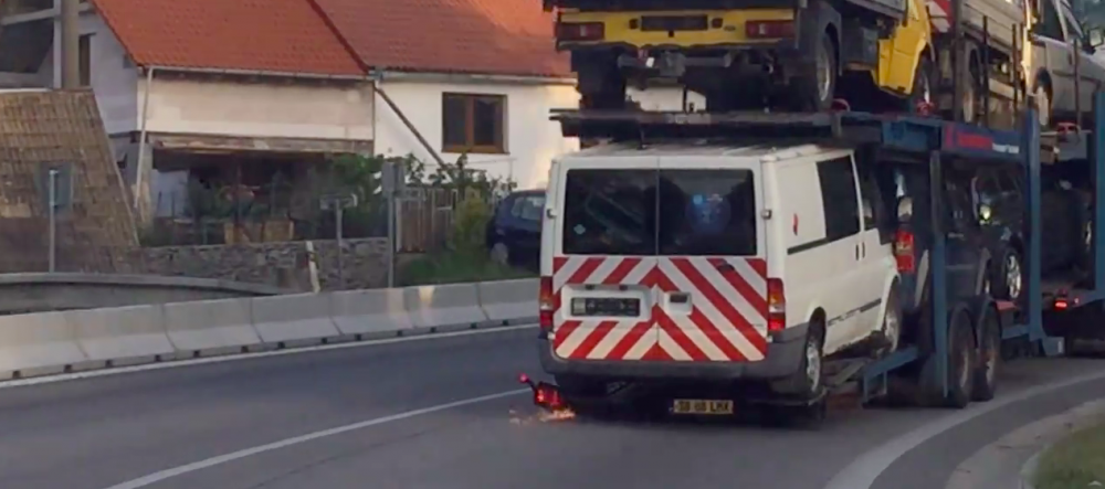 Z avie spadla naložená traverza, odštípnutý kus silnice trefil projíždějící dacii více...
