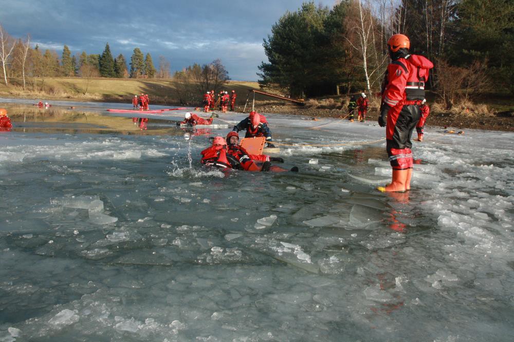 Krajští hasiči se zúčastnili i semináře „Záchrana ze zamrzlé vodní plochy“, který se konal na Lipně.