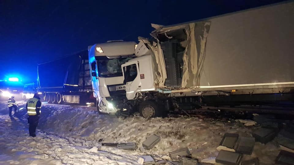 FOTO: U Štoků se čelně střetly náklaďáky. Tvoří se kolony, doprava je zde řízena kyvadlově