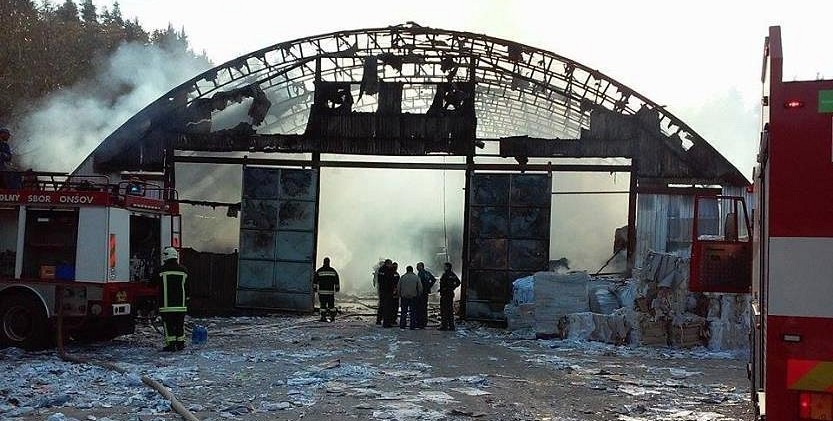 Fotografie z listopadového požáru skladu v Červené Řečici