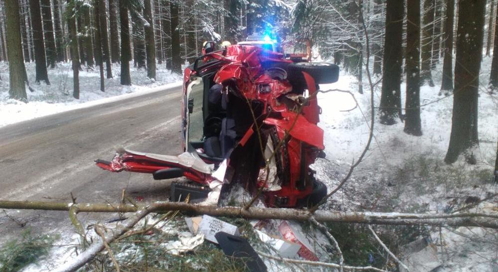 U Cikháje boural řidič. Hasiči ho z auta museli vyprostit hydraulickým nářadím