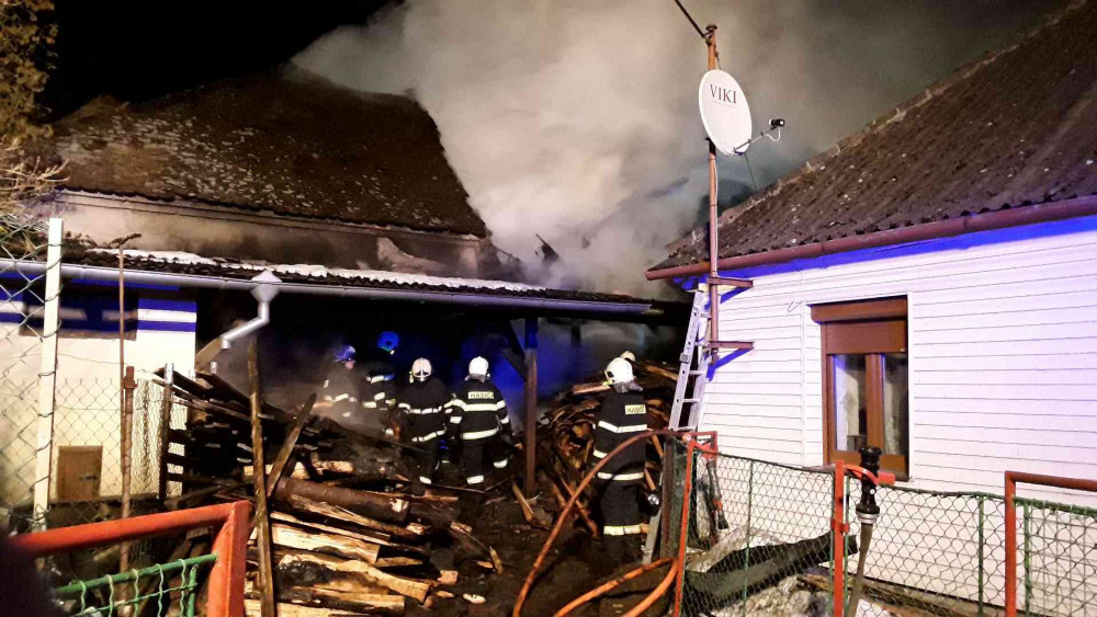 FOTO: Noční požár stodoly ve Staré Říši poškodil tři domy. Škoda je necelý milion korun