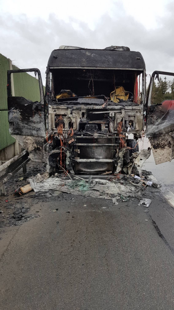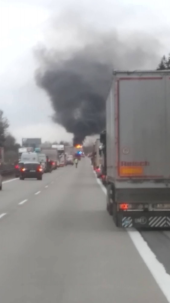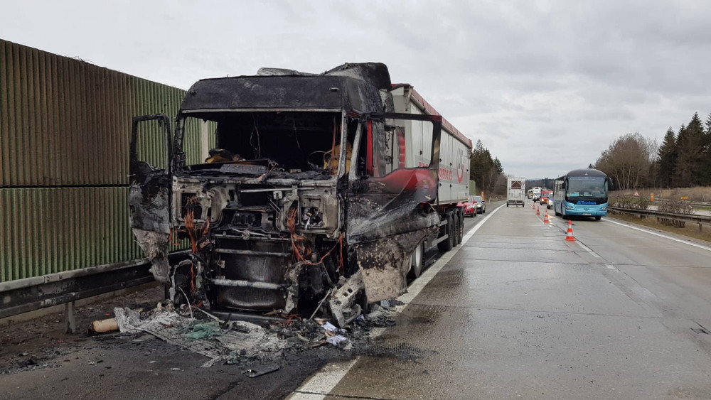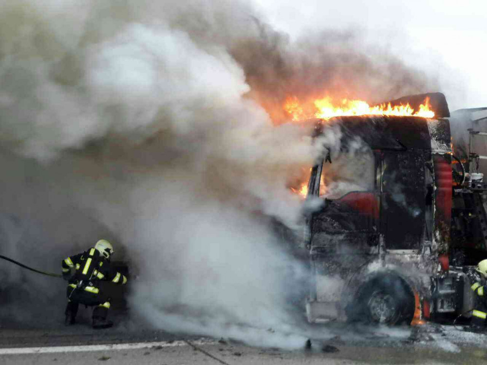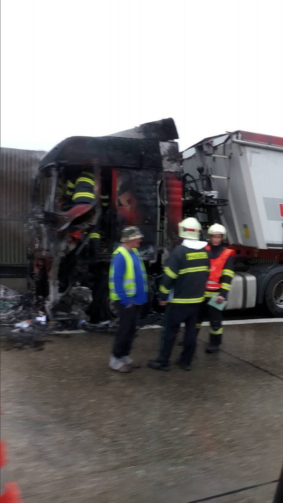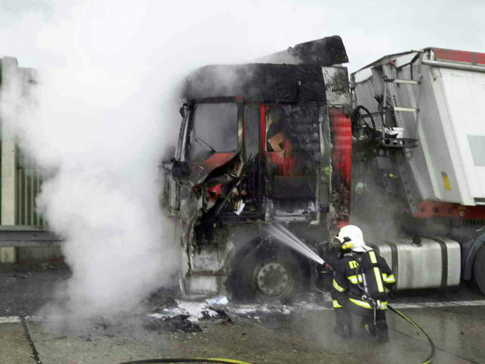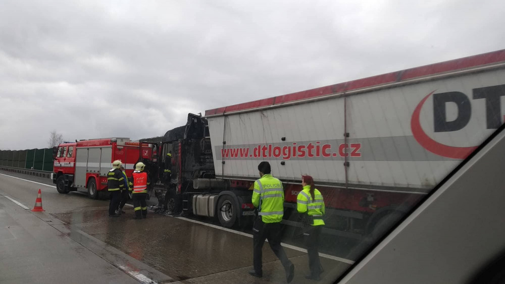 Na 124. km dálnice D1 směrem na Brno hořel kamion. Řidiči se musí připravit na zdržení