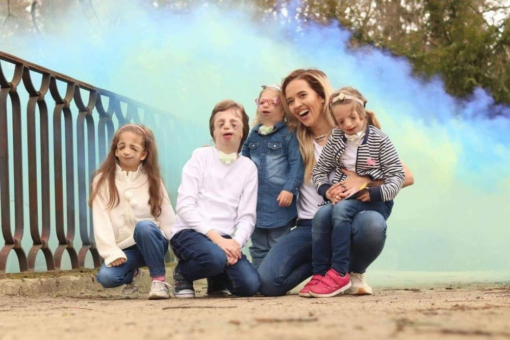 Tamara Klusová společně s dětmi s Treacher Collins syndromem. Uprostřed je také malá Beátka Hladová