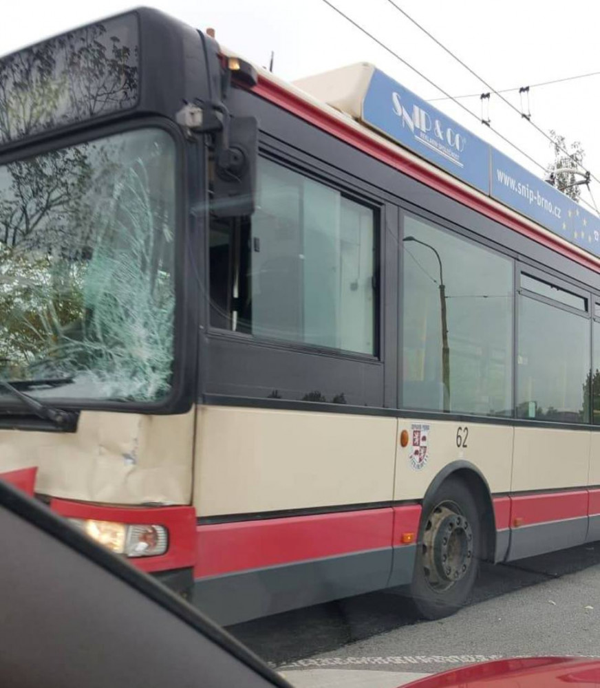 Nedaleko mlékáren na Jiráskově ulici se srazil trolejbus s osobákem. Jeden z řidičů se zranil