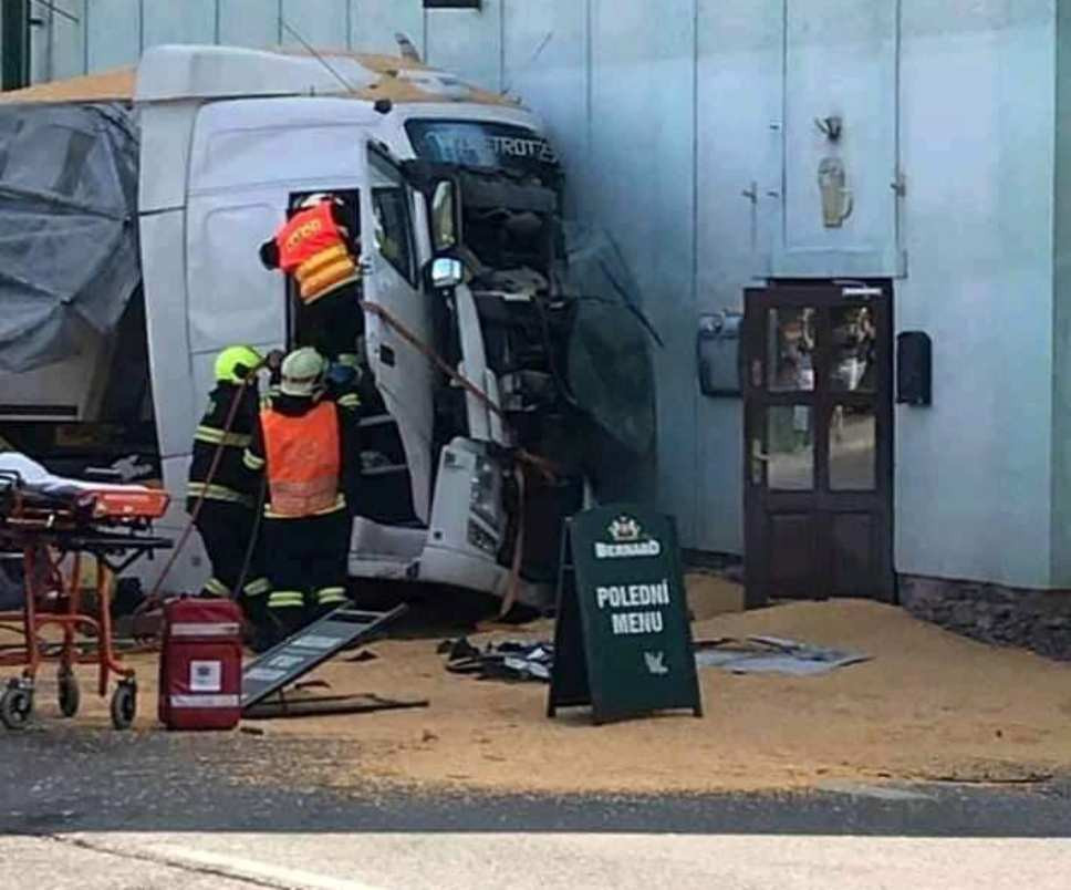 V obci Kámen se srazily dva náklaďáky. Na silnici se vysypala kukuřice