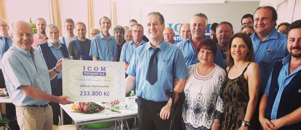 ICOM transport předal zraněnému řidiči Jindřichu Steinhauserovi šek na více než 233 tisíc korun