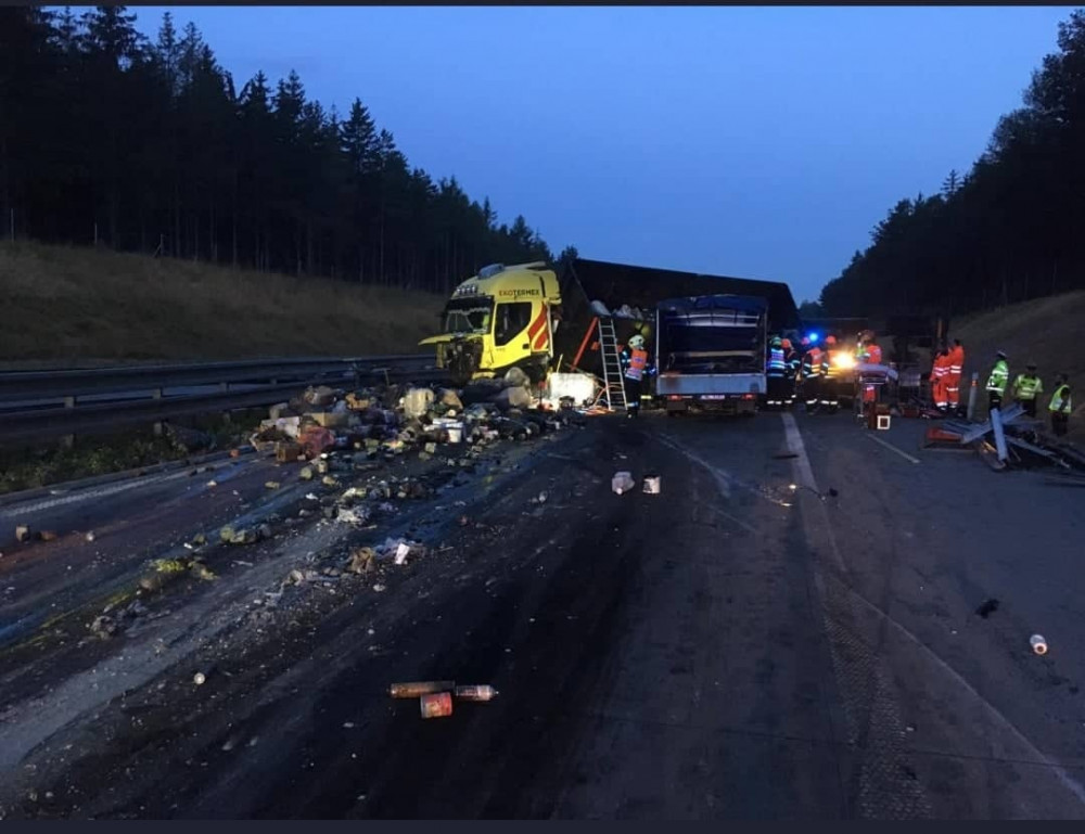 Nehoda dvou nákladních aut zablokovala dálnici D1 u Velké Bíteše