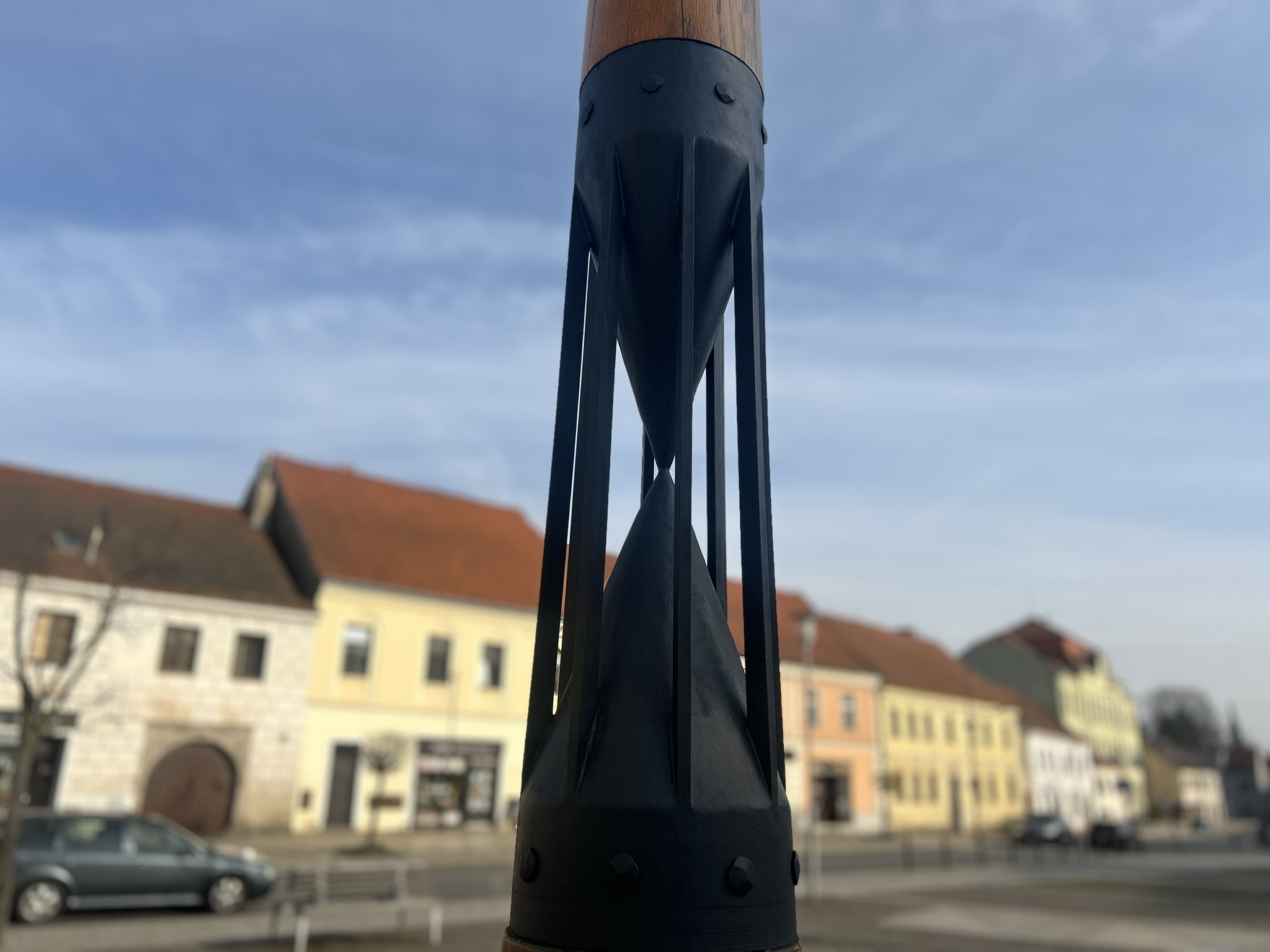 Slunečním hodinám v Třešti je už nějakých 24 let. „Už je to více než 25 let, kdy jsme přemýšleli, jak předělat naše náměstí. Tehdy tady na místě, jak stojíme, bylo parkoviště. Tehdejší vedení radnice přišlo s myšlenkou tento centrální prostor upravit,“ vrátil se do minulosti starosta Třeště Vladislav Hynk (KDU-ČSL).