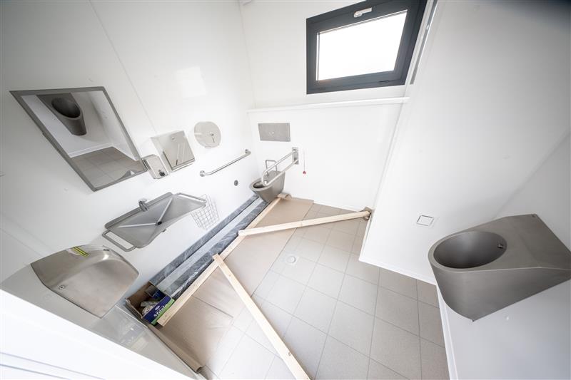 „Dosud se dělníci soustředili hlavně na přípravu terénu. Hotové jsou všechny inženýrské sítě i základová konstrukce. Většina zpevněných ploch už má finální dlažbu a téměř dokončené je i navazující stanoviště pro kontejnery na odpad. Teď přichází na řadu samotná stavba. Uvnitř kontejneru je třeba propojit technologie, tedy vodu, odpady, elektroinstalace i datové rozvody. Součástí bude totiž i systém pro platby kartou a mincemi. Část vybavení už výrobce dodal hotovou, včetně podlahového topení, dlažeb nebo sanitárního zařízení,“ vyjmenoval Radovan Daněk, mluvčí jihlavské radnice.