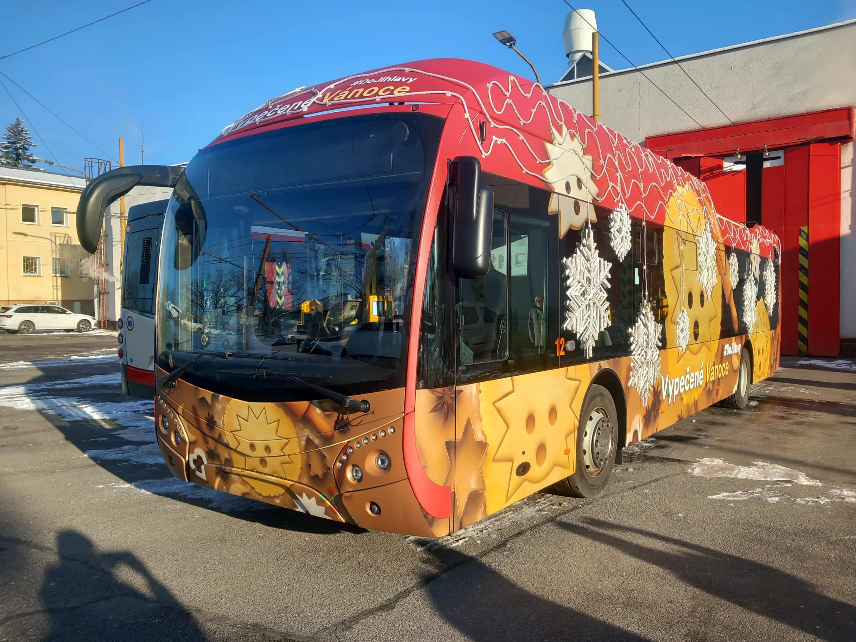 Poslední úpravy dělají pracovníci dopravního podniku na vánočním trolejbusu, který brzy vyjede do ulic krajského města Vysočiny. I letos bude ladit s vizuálem adventu v režii Brány Jihlavy, bude v designu Vypečených Vánoc.
