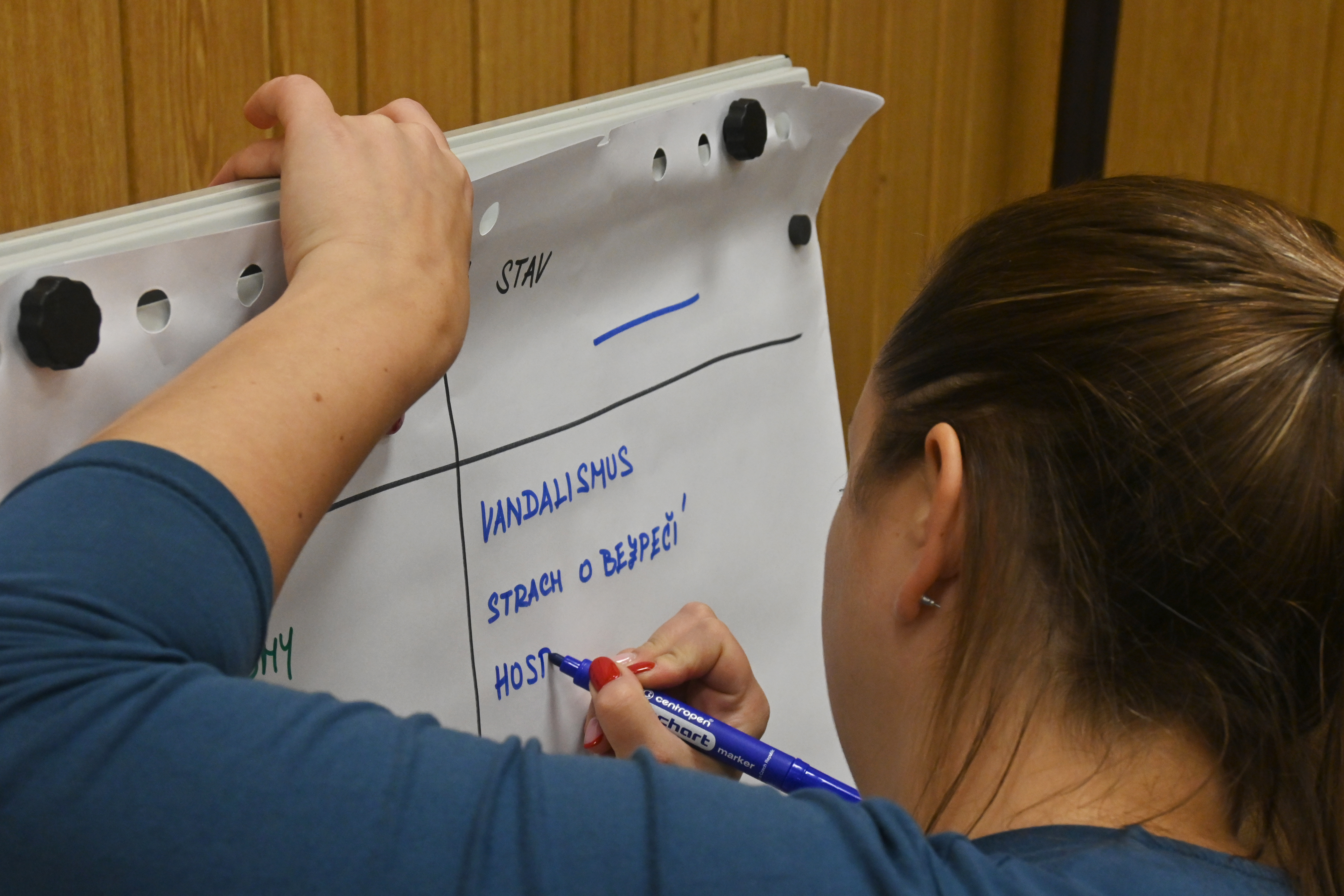 Po prezentaci studie se lidé rozdělili do tří skupin. Nejdříve odborníky z radnice zajímalo, jak obyvatelé vidí současný stav parku. Lidé jmenovali pozitiva a samozřejmě také negativa.