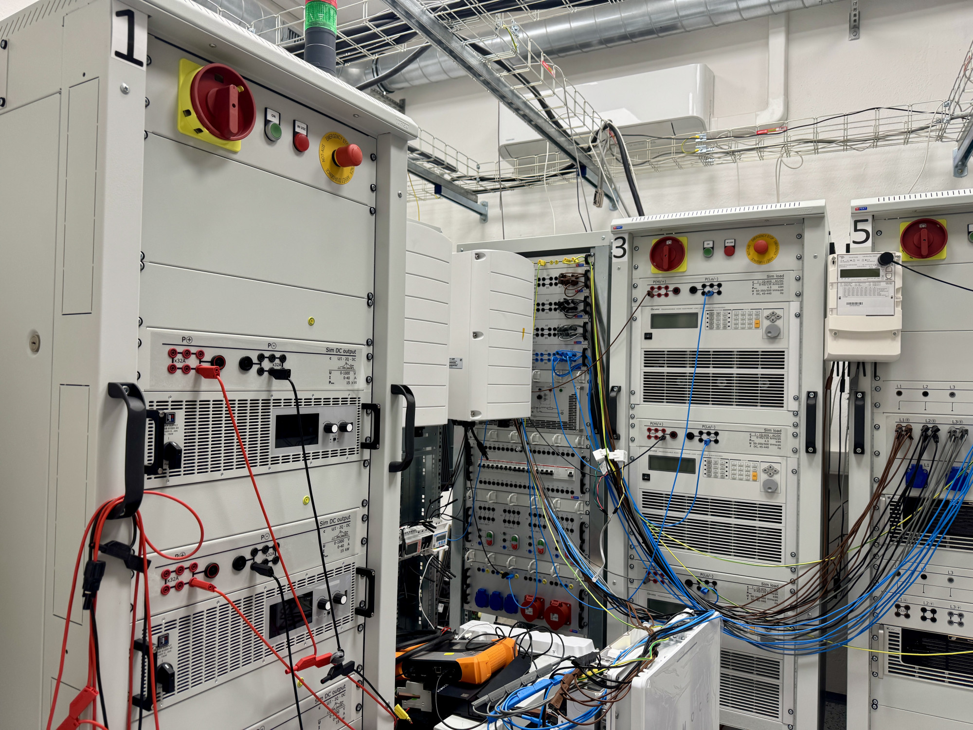 „Mezi tyto dvě části připojíme střídač a provádíme simulace, které ověřují jeho schopnosti,“ popsal proces Čeleda. Dodal také, že jeden test trvá zhruba dva dny. Pokud zařízení nevyhoví, výrobce dostane možnost upravit nastavení a test zopakovat.