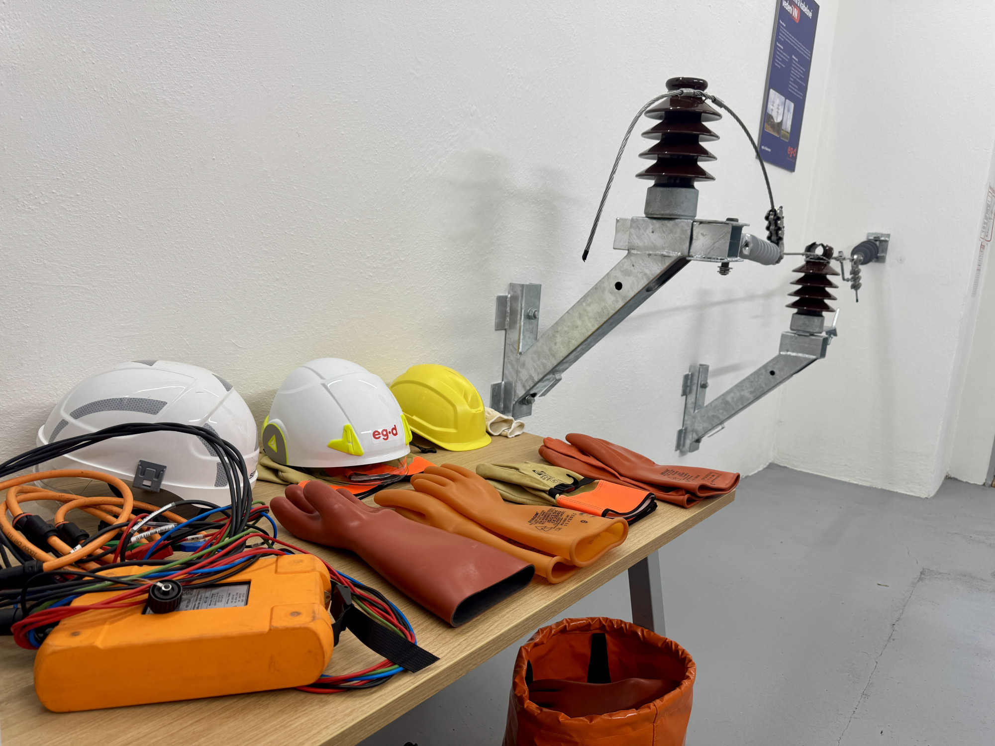 Součástí areálu je i cvičný polygon, který simuluje reálnou distribuční síť. Vznikl na místě bývalého transformátorového stání a slouží nejen zaměstnancům, ale i studentům. „Máme tady základní prvky distribuční sítě – kabelové skříně, trafostanici nebo rozvaděče. Lidé si mohou vyzkoušet měření i práci se zařízením,“ popisuje Volek.
